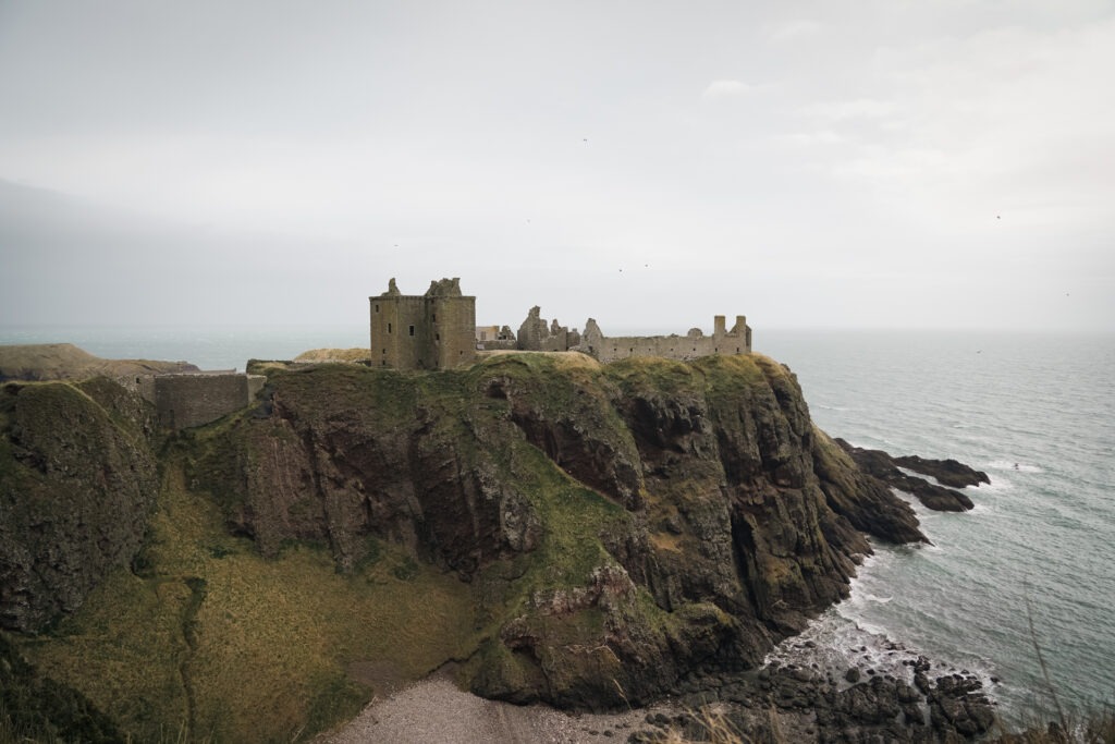 Wie Dunnottar Castle voor het eerst ziet begrijpt meteen waarom dit kasteel tot de een van de meest indrukwekkende kastelen van Schotland behoort. Het ligt op een steile rots die bijna volledig wordt omringd door water. Alleen via een smal pad kom je bij de ingang. Deze afgelegen ligging maakte het kasteel eeuwenlang bijna onneembaar. En als je de combinatie van ruige kliffen, groene heuvels en de zee ziet begrijp je dit wel.
